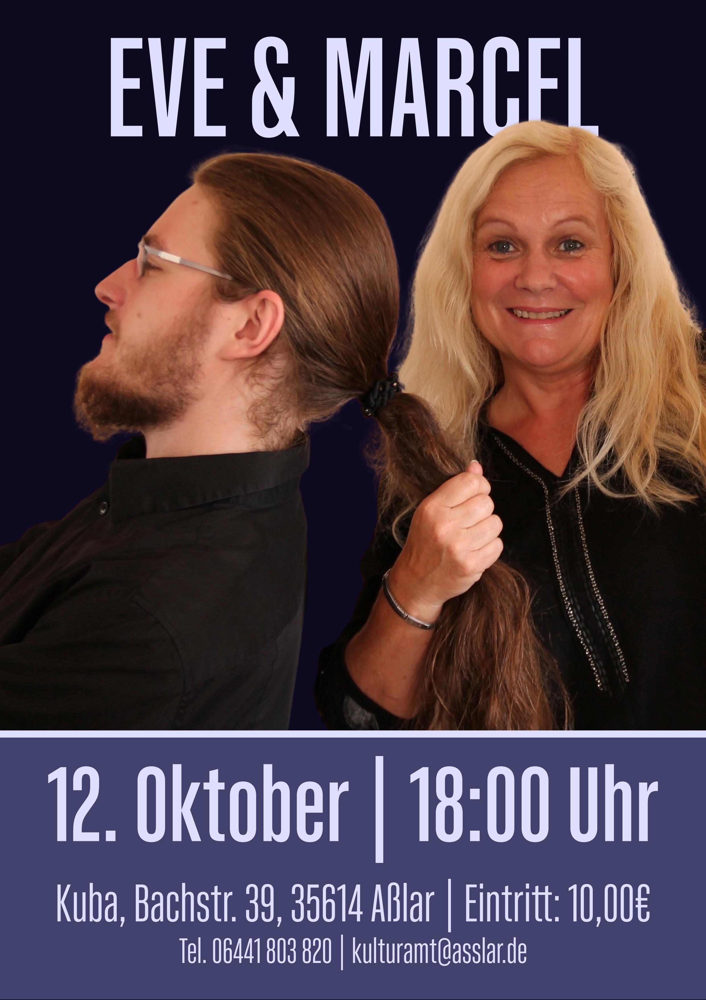 Eve&Marcel entführen ihr Publikum auf eine musikalische Reise voller Leichtigkeit, Tiefe und Überraschungen. Marcel verzaubert mit Gesang, Piano und Gitarre, Eve ergänzt mit Gesang und Percussion – zusammen entsteht ein Klangbild, das mal humorvoll, mal nachdenklich, aber immer ehrlich und nahbar ist.